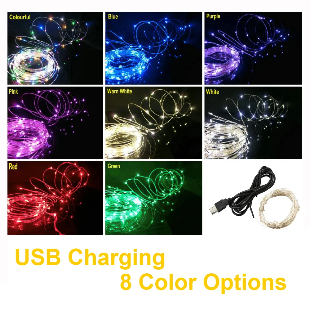 СВЕТОДИОДНЫЕ гирлянды 2 м 5 м 10 м 50100led 5 В USB питание открытый теплый белыйRGB медный провод Рождество Свадьба Рождество вечеринка украшение