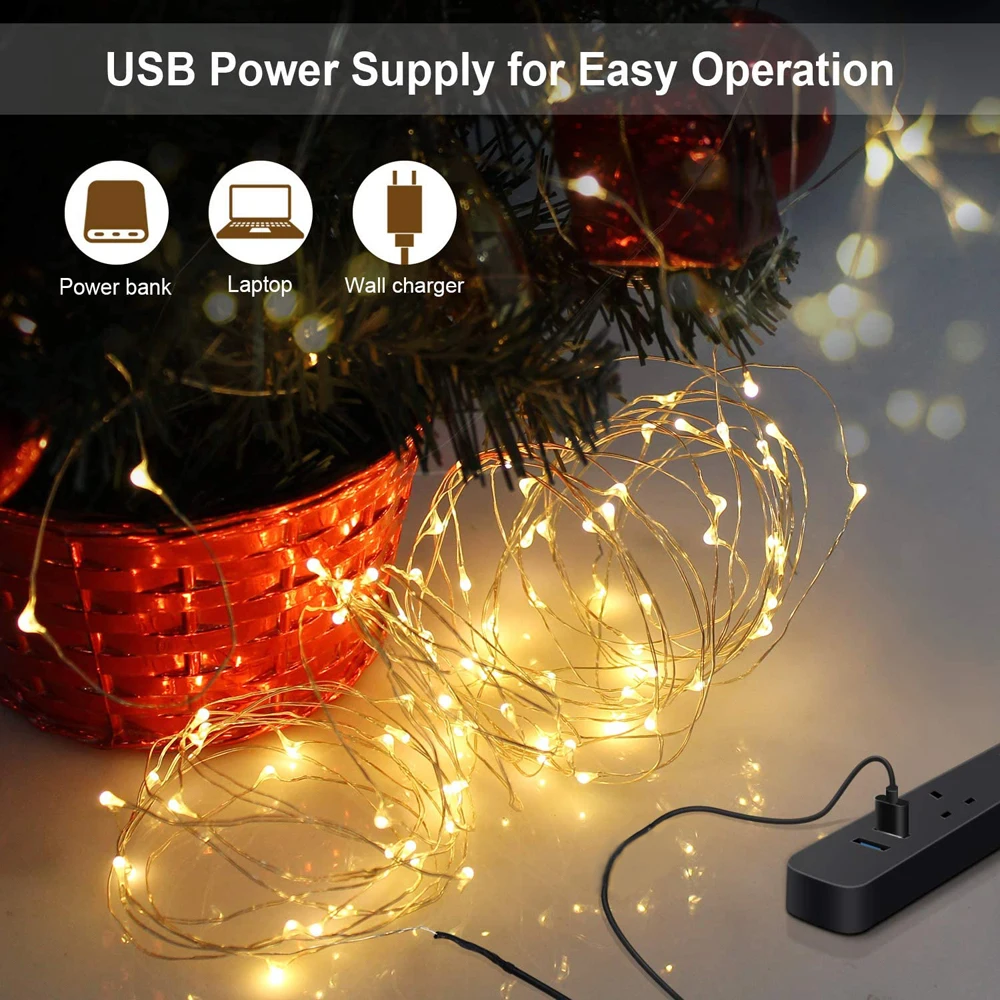 Светодиодная гирлянда, 10 м, 33 фута, 100 светодиодов, 5 В, с питан...