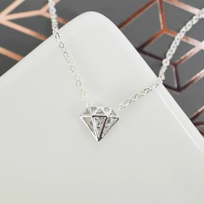 NameFashion Sparkling CZ Diamante Necklace Clean Crystal Zircon Geometric