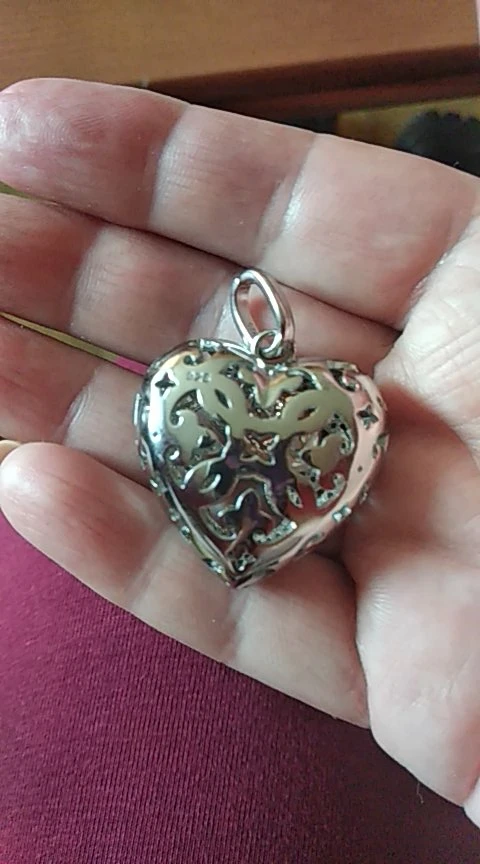 Хороший кулон, но размер больше, чем я ожидала, и я уверен, что это не серебро/нет штампа. Продавец не предоставляет мерки