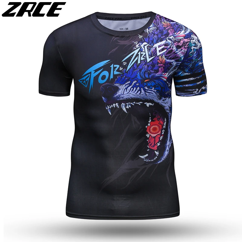 Мужская облегающая футболка ZRCE, летняя футболка с 3D-принтом волка, рукавом на руку, круглым вырезом, странные крутые вещи