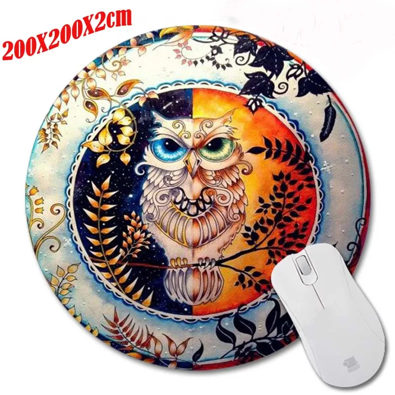 Круглый коврик для мыши, резиновый коврик для мыши с изображением совы