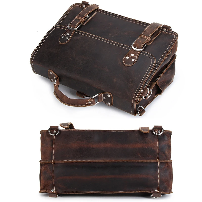 Мужской толстый кожаный рюкзак Crazy Horse для ноутбука, большая вместительность, натуральная кожа, 17 дюймов, ПК, сумка для работы, 3 использования, мужская сумка на плечо