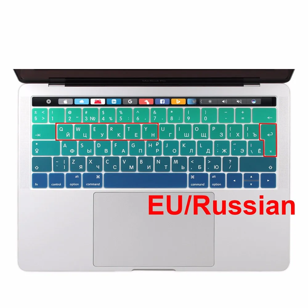 Силиконовый защитный чехол для клавиатуры с испанскимфранцузскимрусским языком, для Macbook 2018, 2019 Pro, 13, 15 с сенсорной панелью Pro 13,3, 15,4 дюйма