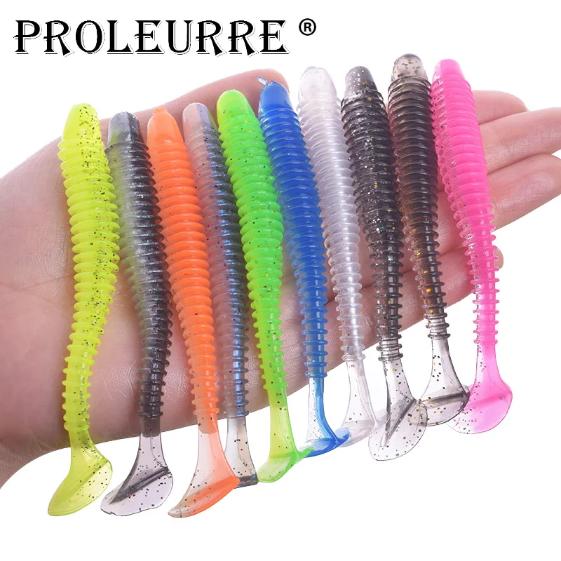 Рыболовный воблер Proleurre, Мягкая приманка черви, 5 см, 7 см, 9 см, блестящий, для ловли карпа, окуня, искусственный, двухцветный, силиконовый