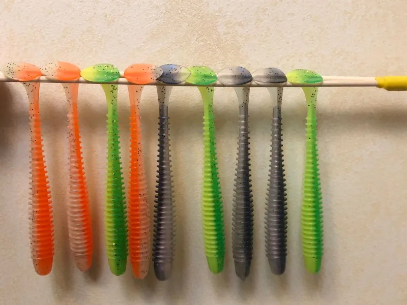Силикон мягкий, имеет смазку и съедобный запах. Цвета красивые и как на сайте. Единственный минус очень долгая доставка.,почти 2 месяца. Буду заказывать ещё. Завтра может использую на рыбалке, и если поймаю что-то то дополню.