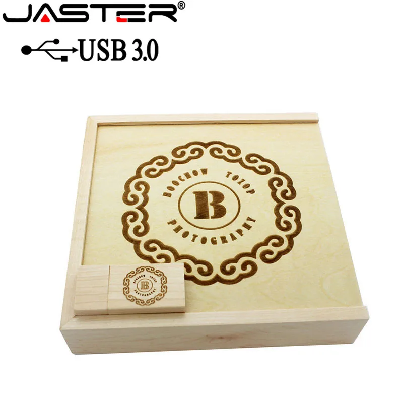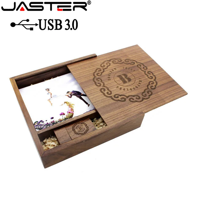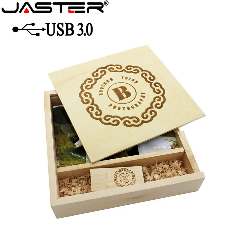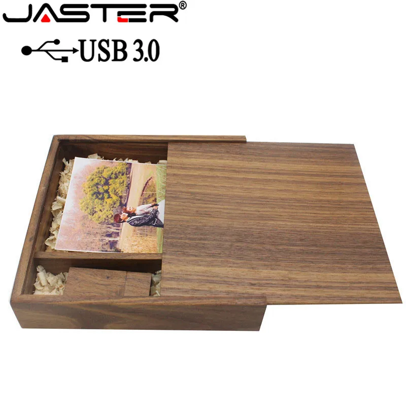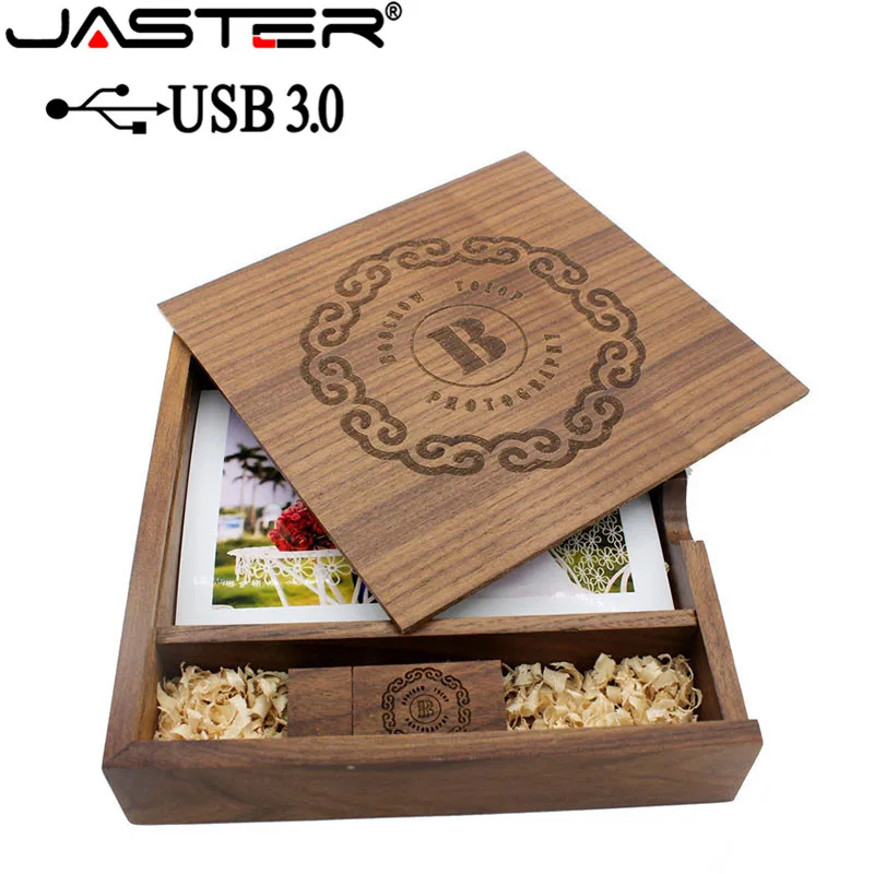 Деревянный фотоальбом JASTER USB 3,0, usb + Подарочная коробка, флэш-накопитель, Флэшка 16 ГБ, 32 ГБ, 64 ГБ, свадебный подарок, 1 шт., бесплатный логотип