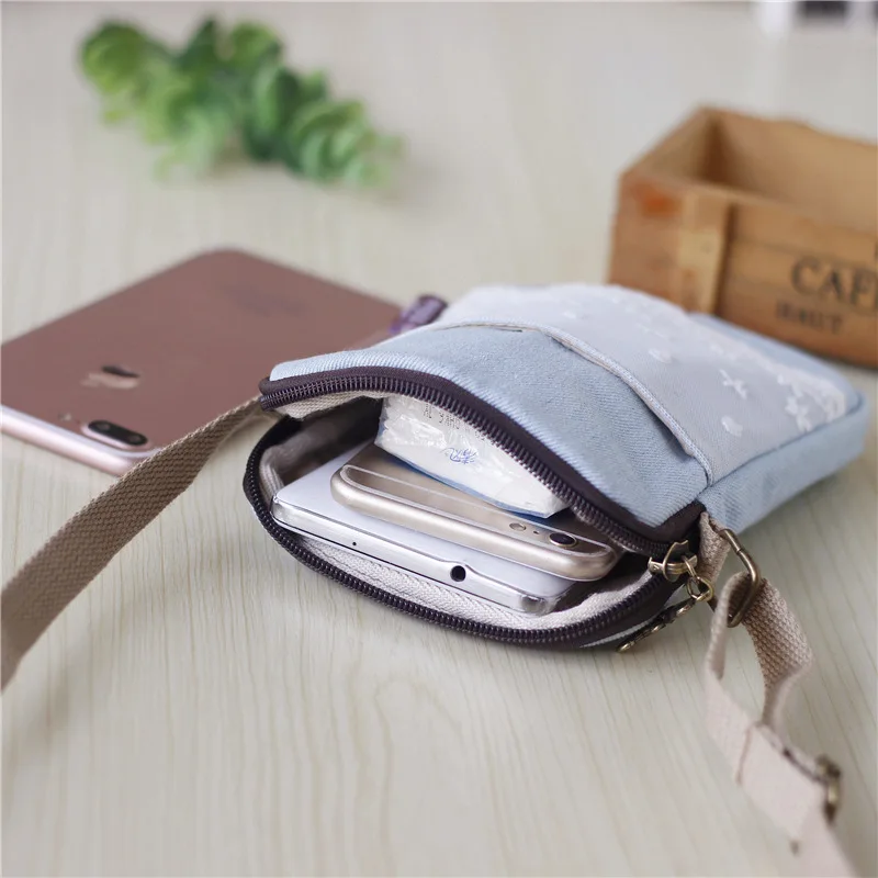Женский милый мультяшный кошелек с принтом для телефона, кошелек для монет, Дамский холщовый чехол для денег, маленькая кавайная сумка через плечо для маленьких девочек