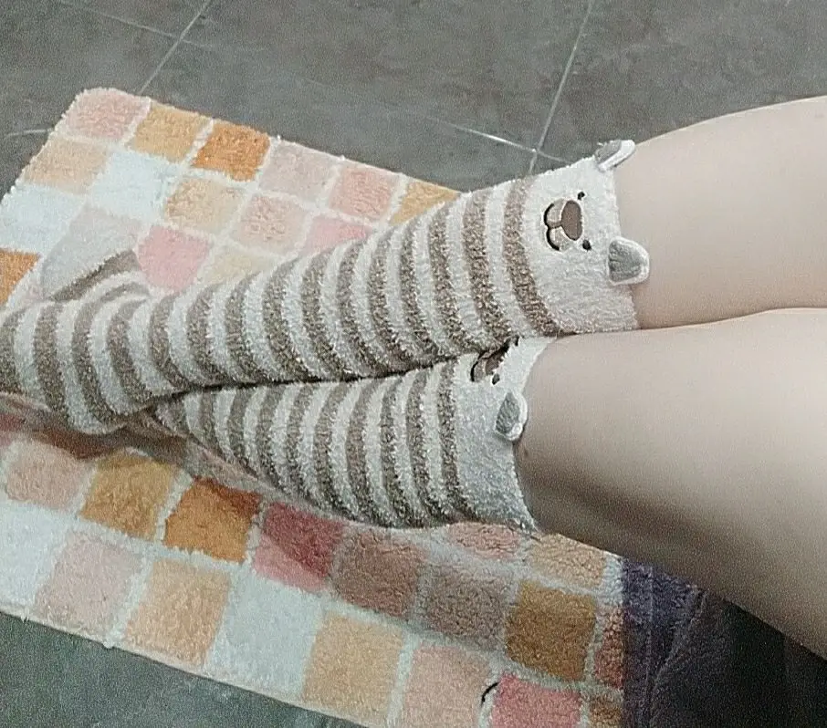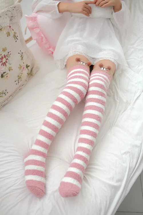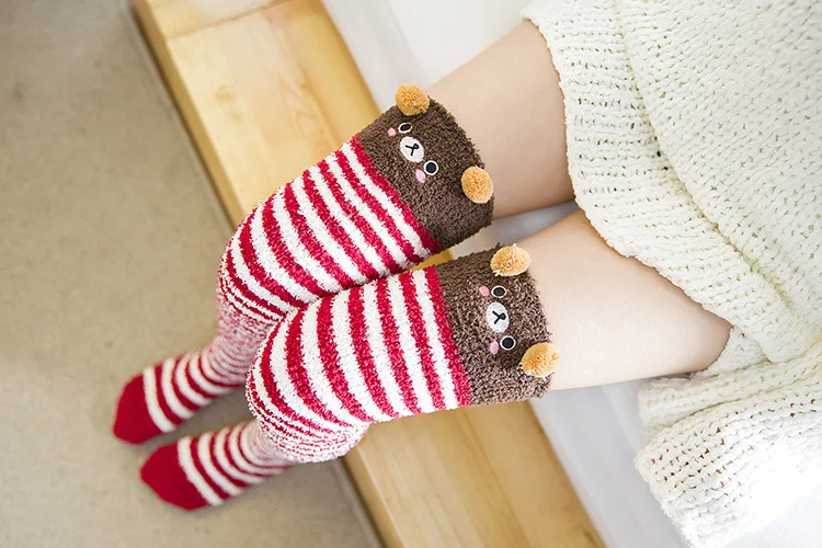 Гольфы в японском стиле мори, с рисунком животных, полосатые, милые, кавайные, уютные, длинные, до бедра, компрессионные, зимние, теплые