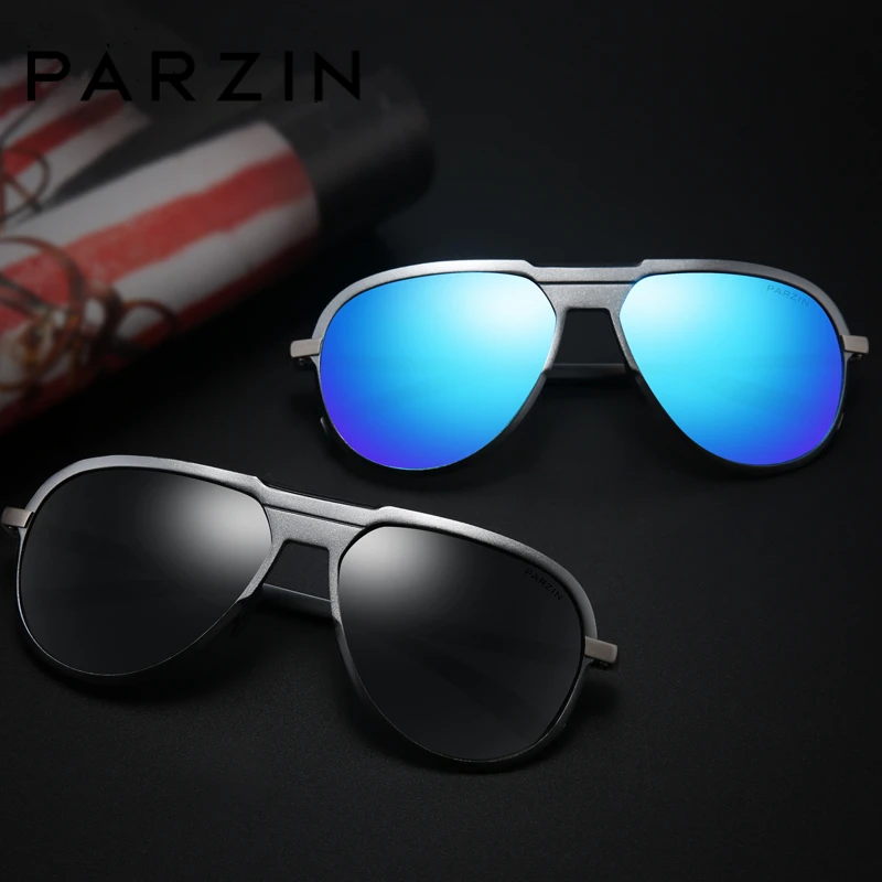 Мужские классические поляризованные солнцезащитные очки PARZIN, очки для вождения Shield UV Protection 400, солнцезащитные очки Pilot Retro с оправой из легкого металла 8133