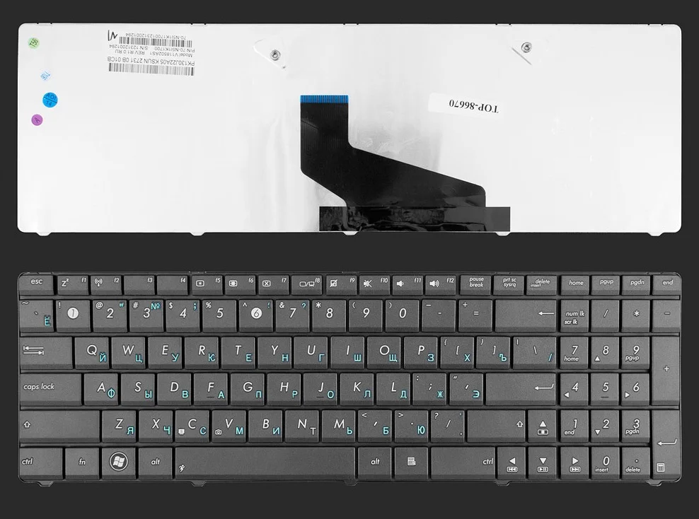 Клавиатура для ноутбука ASUS X73, N73, K73, K73T, A53U, A53U, K73BY, K73T, K73B, K73TA, X73B, X73CBE, A53, A53T, A73TA, A73TK, русскаяанглийская раскладка