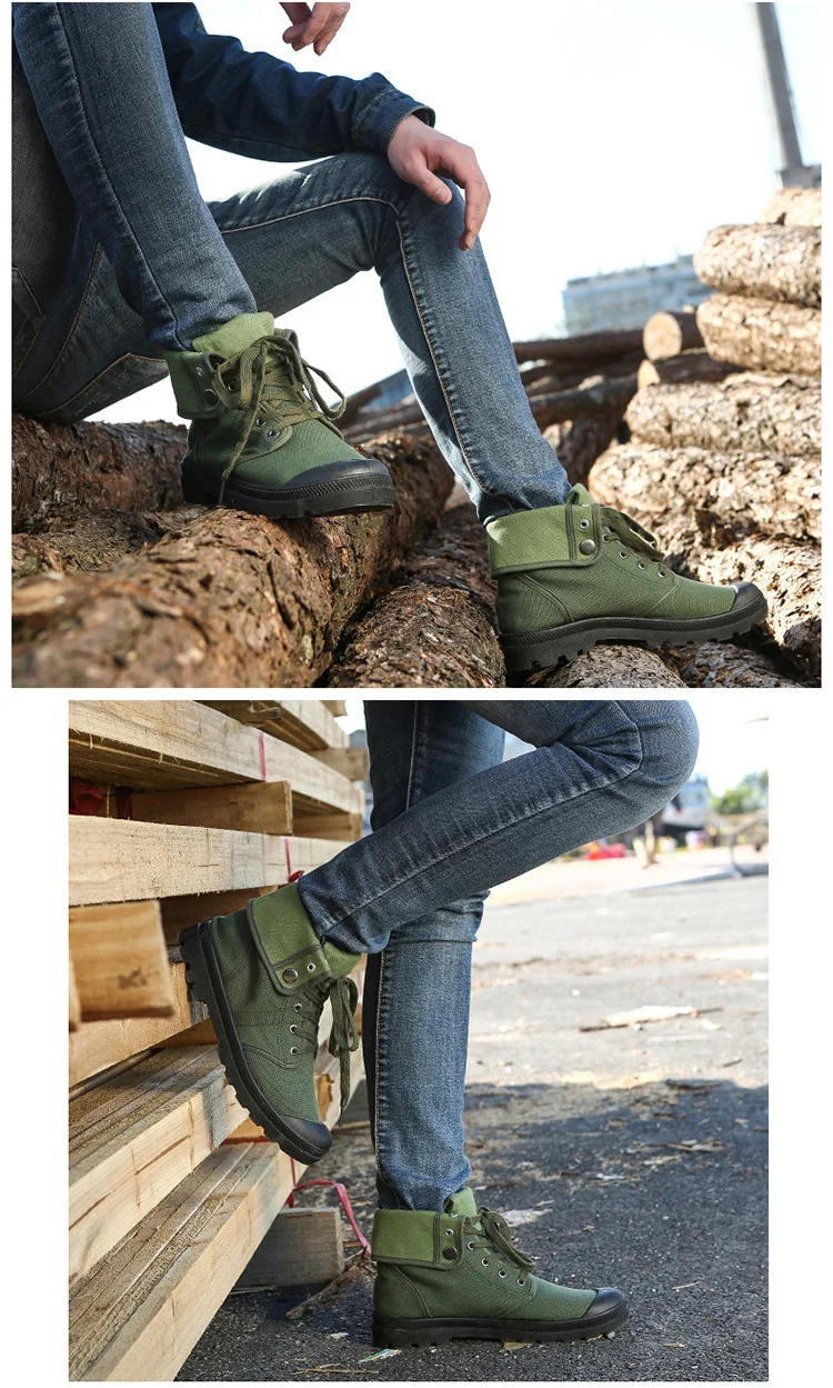 Новая Демисезонная обувь мужские ботинки парусиновая обувь дышащие высокие мужские ботинки мужские Брендовые ботильоны армейского зеленого цвета ZH2225