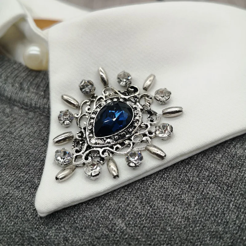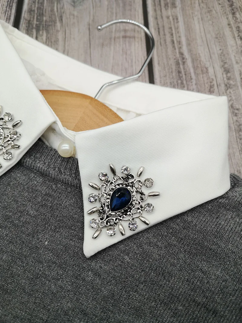 Женская винтажная блузка с камнями, кружевная офисная блузка с ложным воротником для взрослых