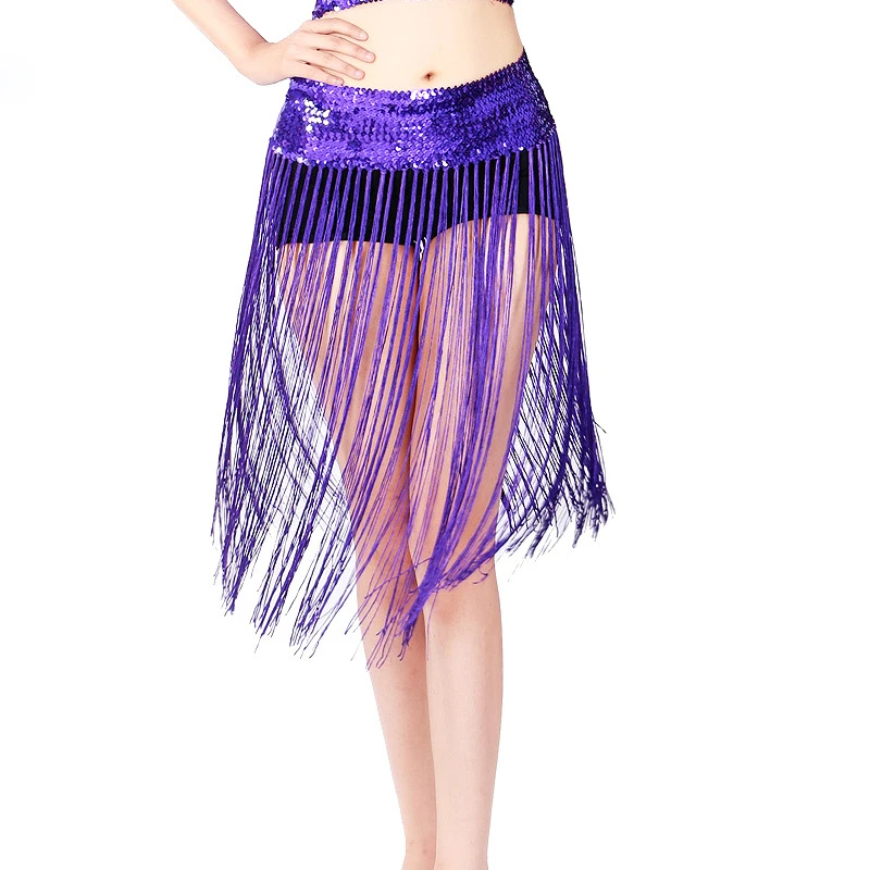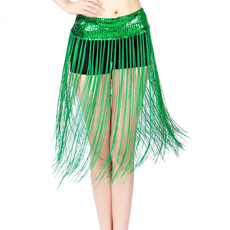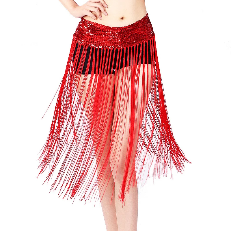 10 Цвета дешевые танец живота одежда аксессуары эластичные с длинной бахромой ремни Блестки для женщин танец живота хип шарф с эластичной резинкой