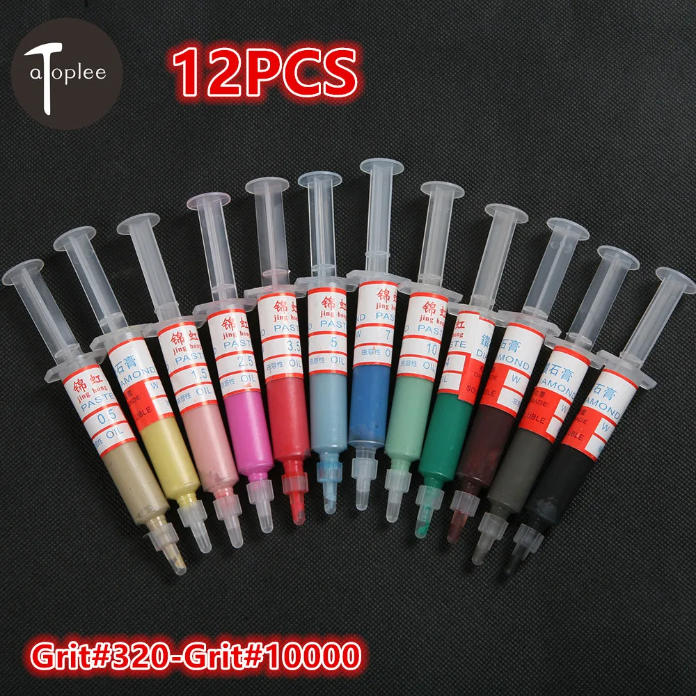 Новая Полировальная паста #320-10000 с зернистостью 12 шт., с растворимостью масла, шлифовальная Полировальная паста без загрязнений для полировки шерсти, ювелирных изделий, стали, керамики