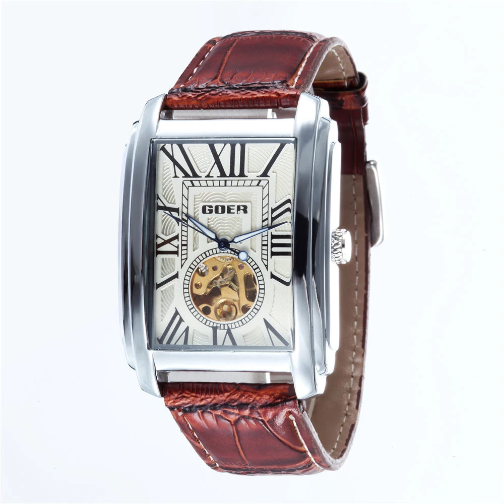 Бренд марки GOER Часы мужские кожаный ремешок автоматические механические мужские часы повседневные наручные часы маленькие секунды Relogio Masculino USD 34,53/Шт.