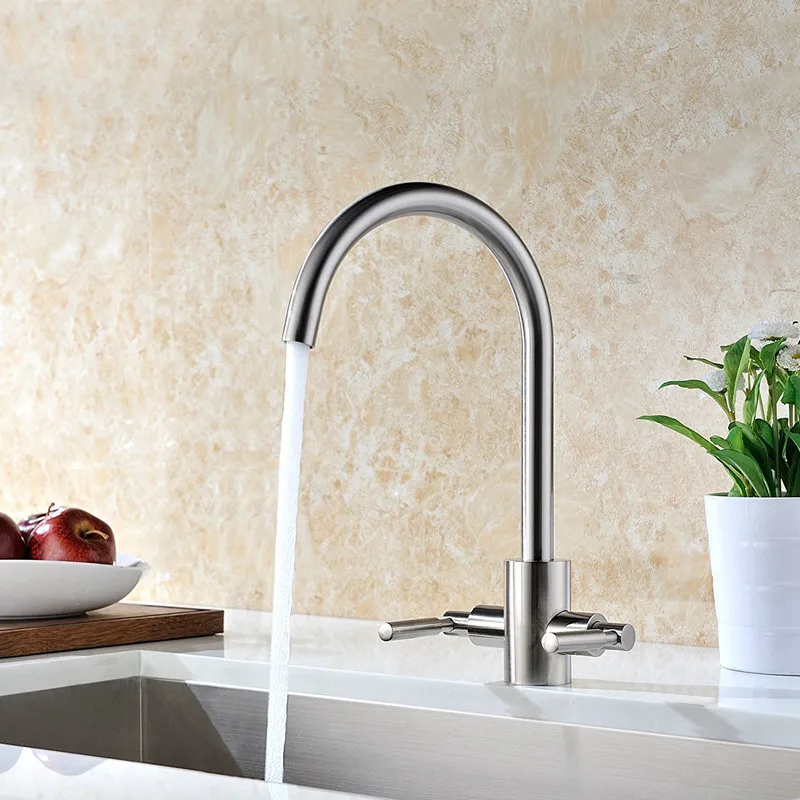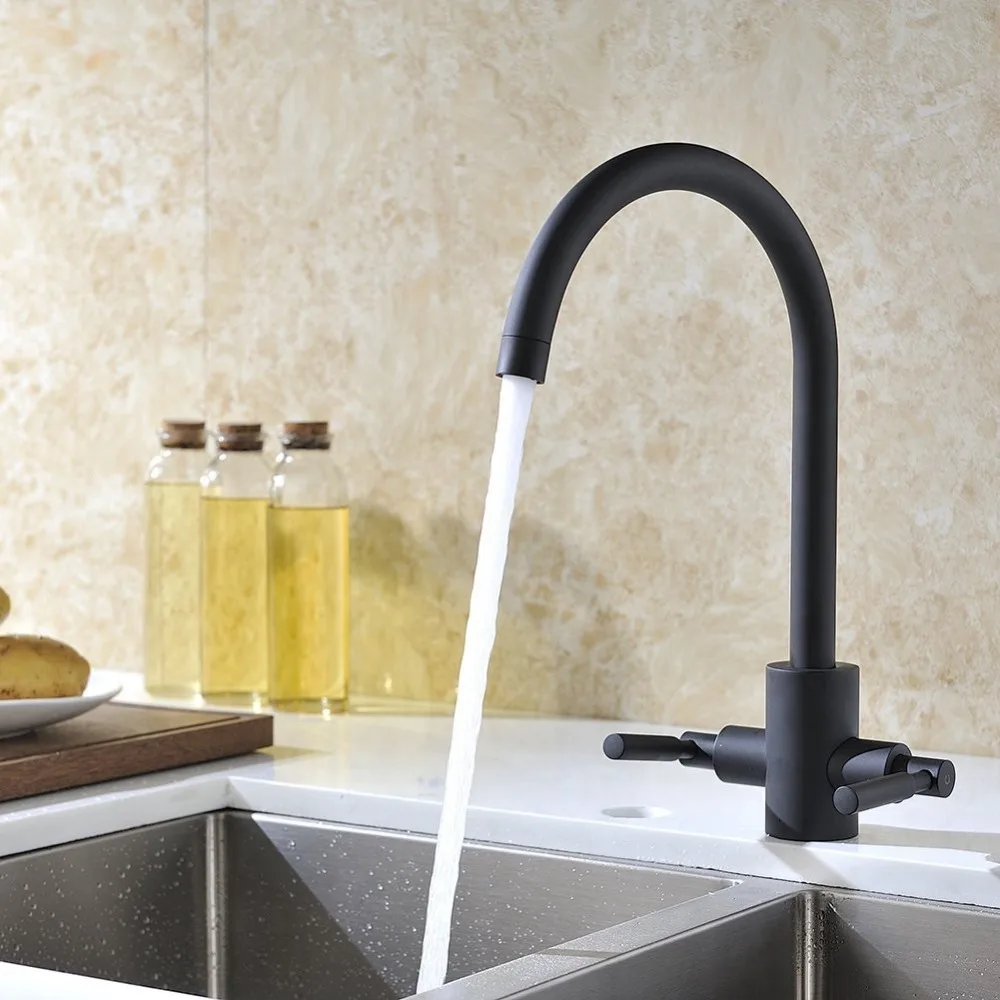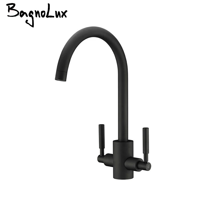 Bagnolux Твердый латунный Современный матовый стальной двухрычажный смеситель для кухонной раковины, краны, идеальный стандартный кран, черные краны с вулканом
