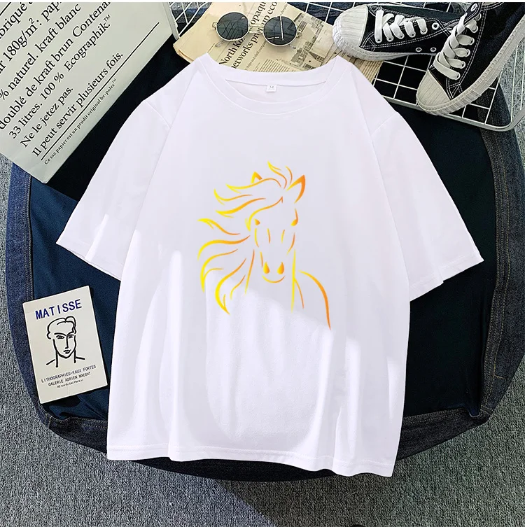 Футболка женская летняя с коротким рукавом и принтом лошади
