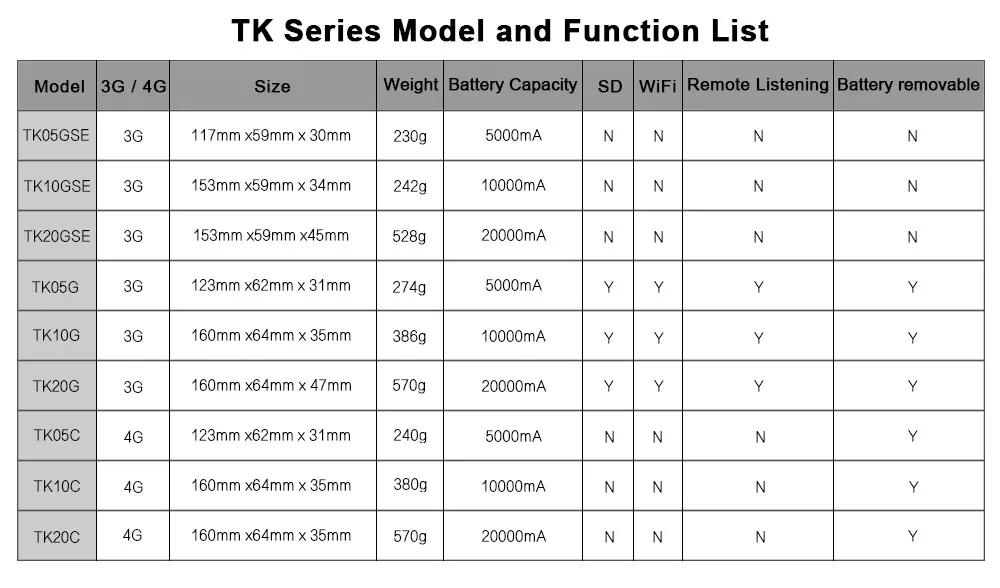 Название МоделиTK05C/TK10C/TK20C Best GPS Tracker 4G