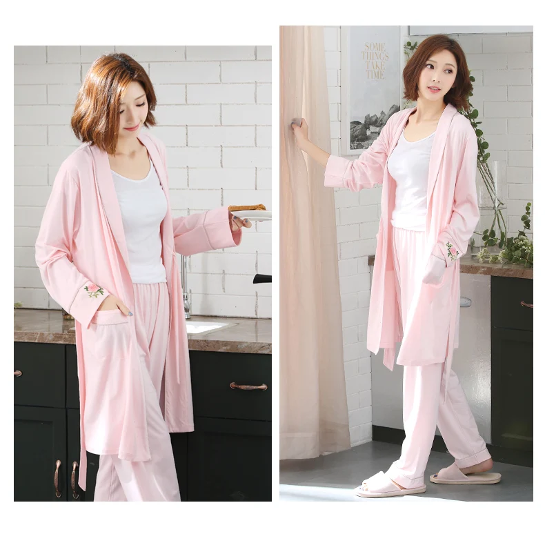 Сезон: весна-лето пара пижамные комплекты халат + брюки, комплект одежды из 2 предметов, из модифицированного вискозного волокна для женщин халат, детский спортивный костюм с длинным рукавом, одежда для сна для мужчин Пижама домашняя одежда M-3XL