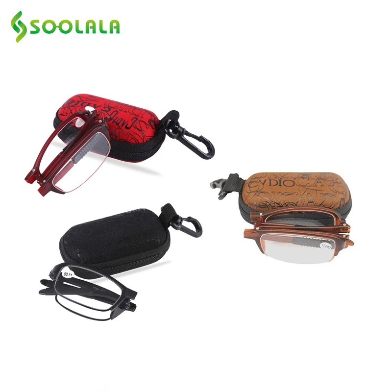Очки для чтения мужские и женские SOOLALA, складные, с футляром на молнии, TR90, складывающиеся очки для чтения