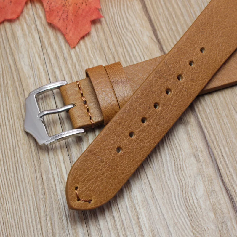 Ремешок из натуральной кожи для наручных часов, браслет ручной работы для мужчин и женщин, с полированной серебристой пряжкой, в ретро стиле, 18 мм 20 мм 22 мм