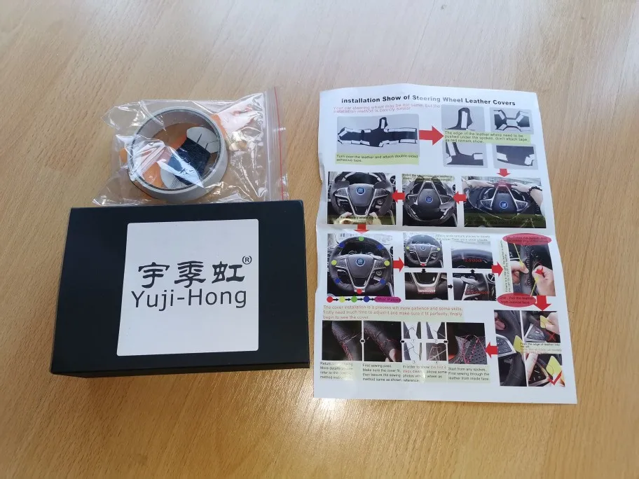 Изделие из высококачественной кожиКрышка рулевого колесаДля специальных моделей автомобилей, Установка проста, посылка включает в себя введение установки и инструменты.