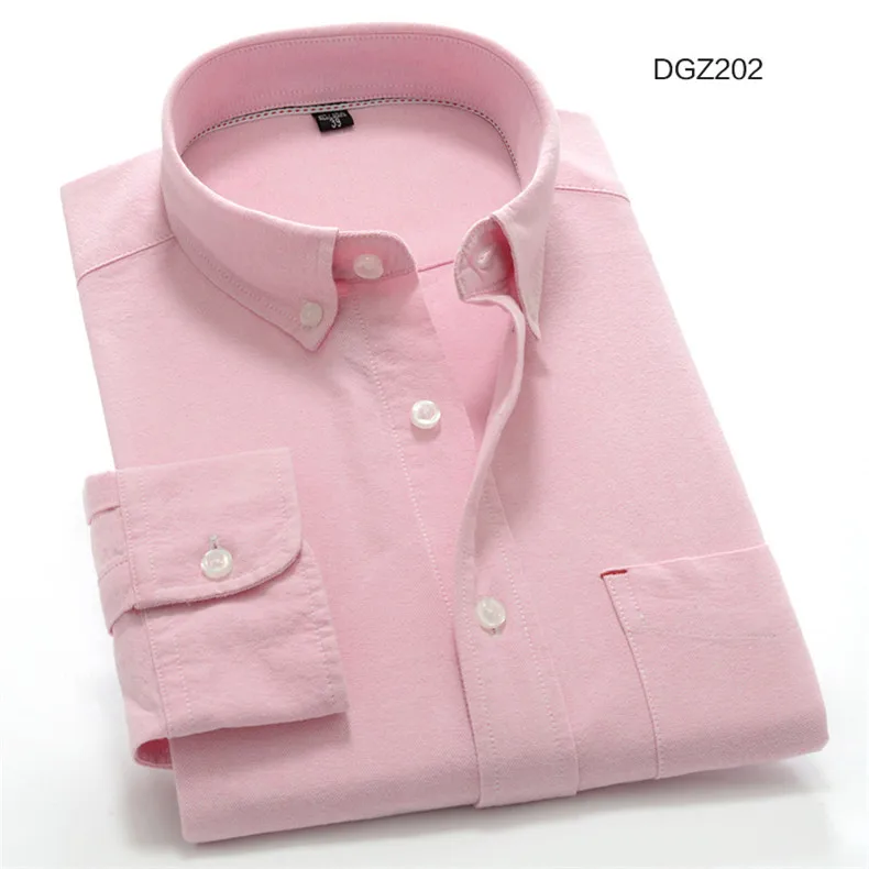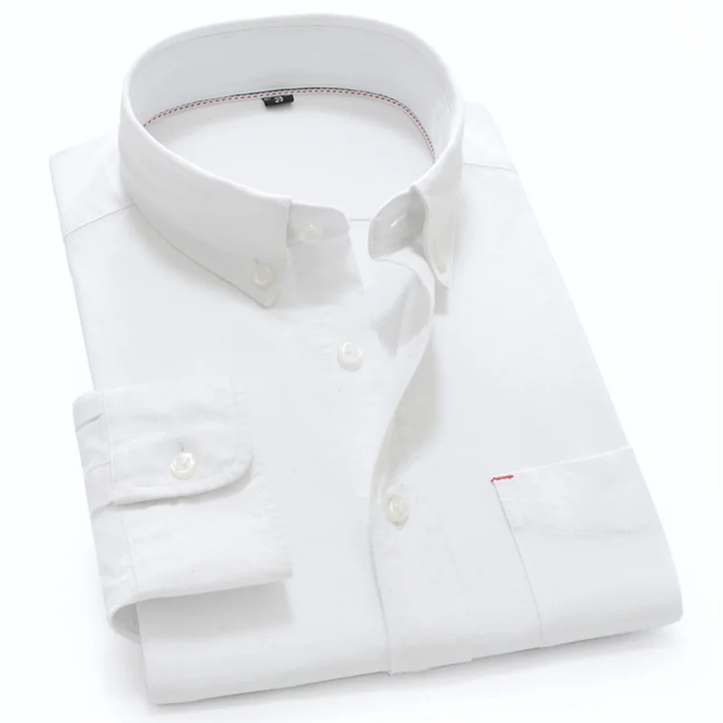 Белая 100% хлопковая оксфордская Повседневная рубашка для мужчин с длинным рукавом, однотонная деловая Мужская рубашка с воротником на пуговицах, простая мужская одежда