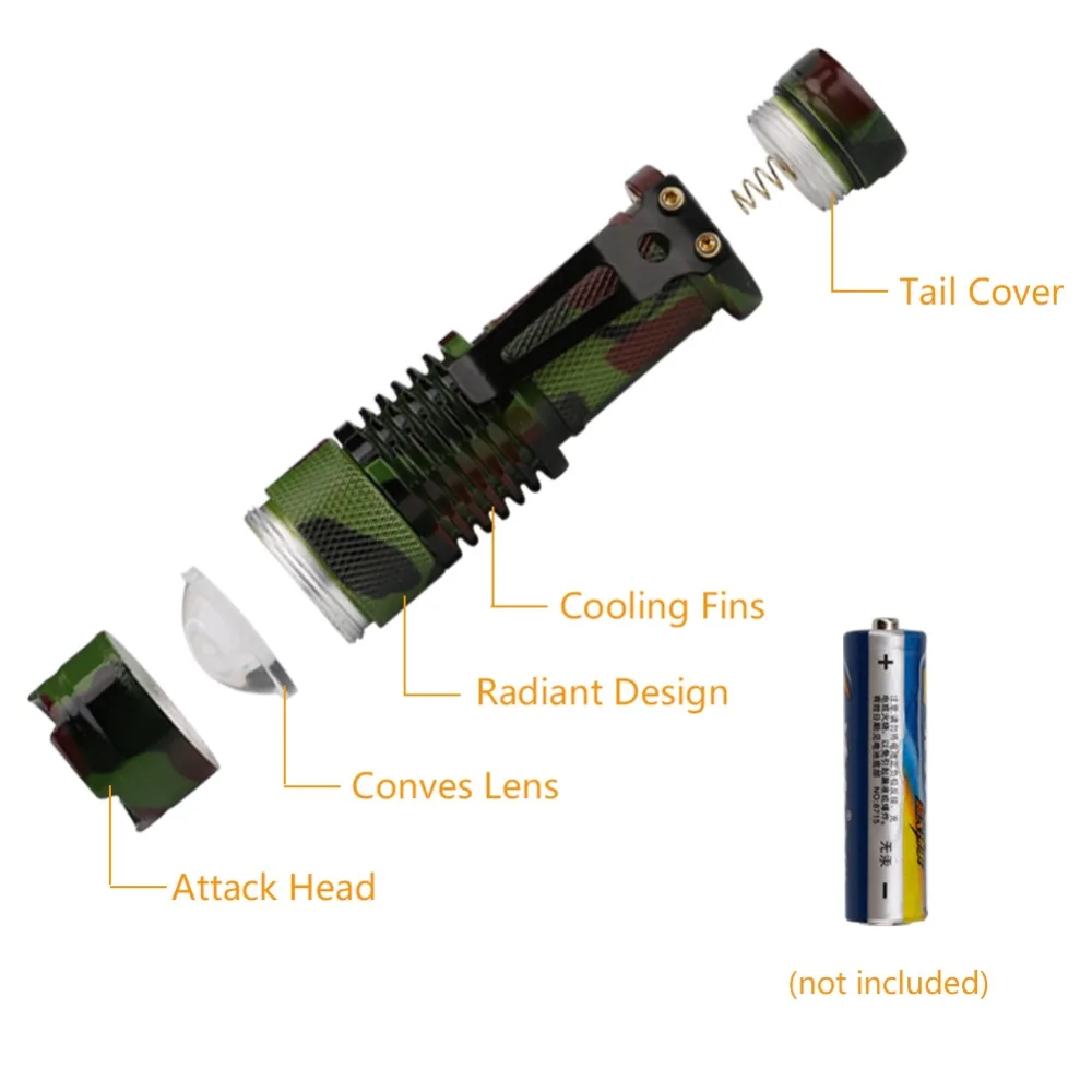 Linkax Камуфляжный Мини светодиодный фонарь, тактический фонарь с портативным зажимом, дизайн с использованием батарейки АА, светильник