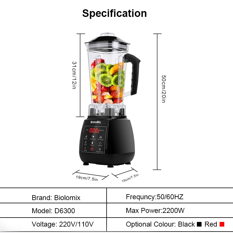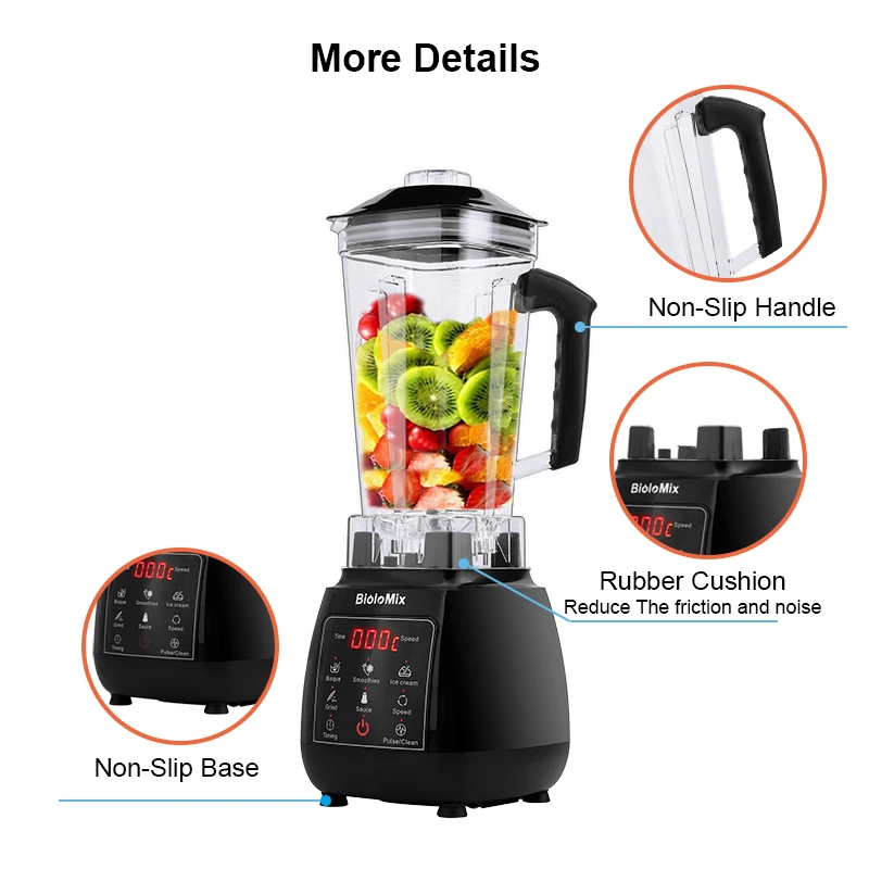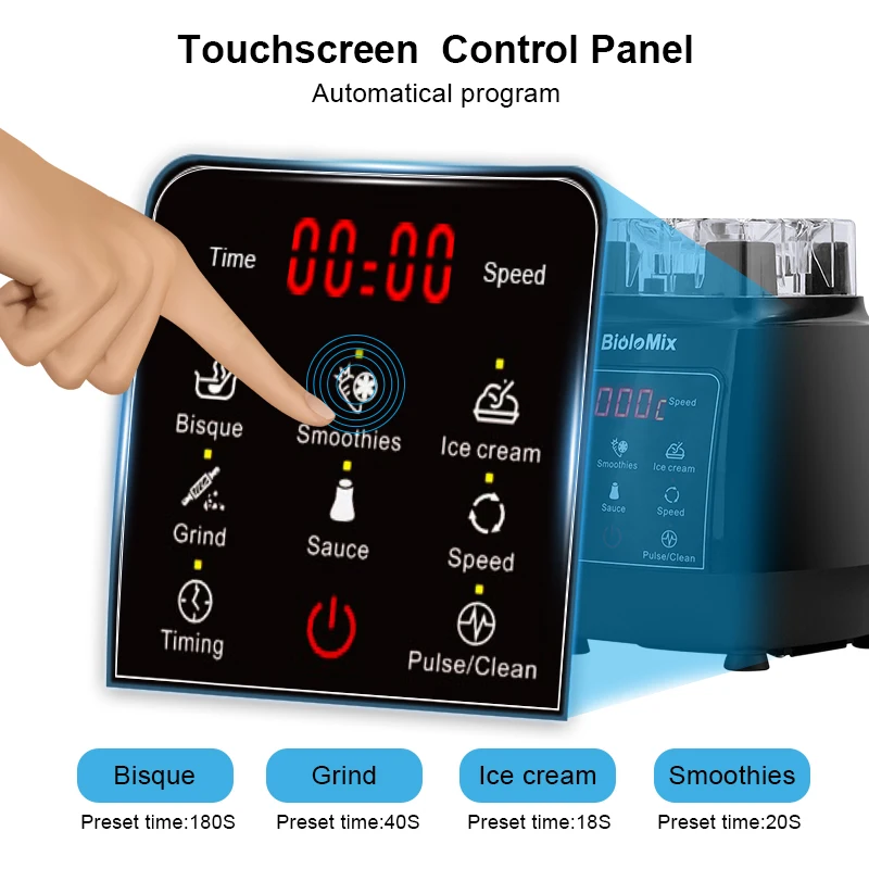 Цифровой 3HP BPA бесплатно 2L Автоматическая тачпад, зеркальная соковыжималка, мощный кухонный комбайн, лед, смузи, фрукты