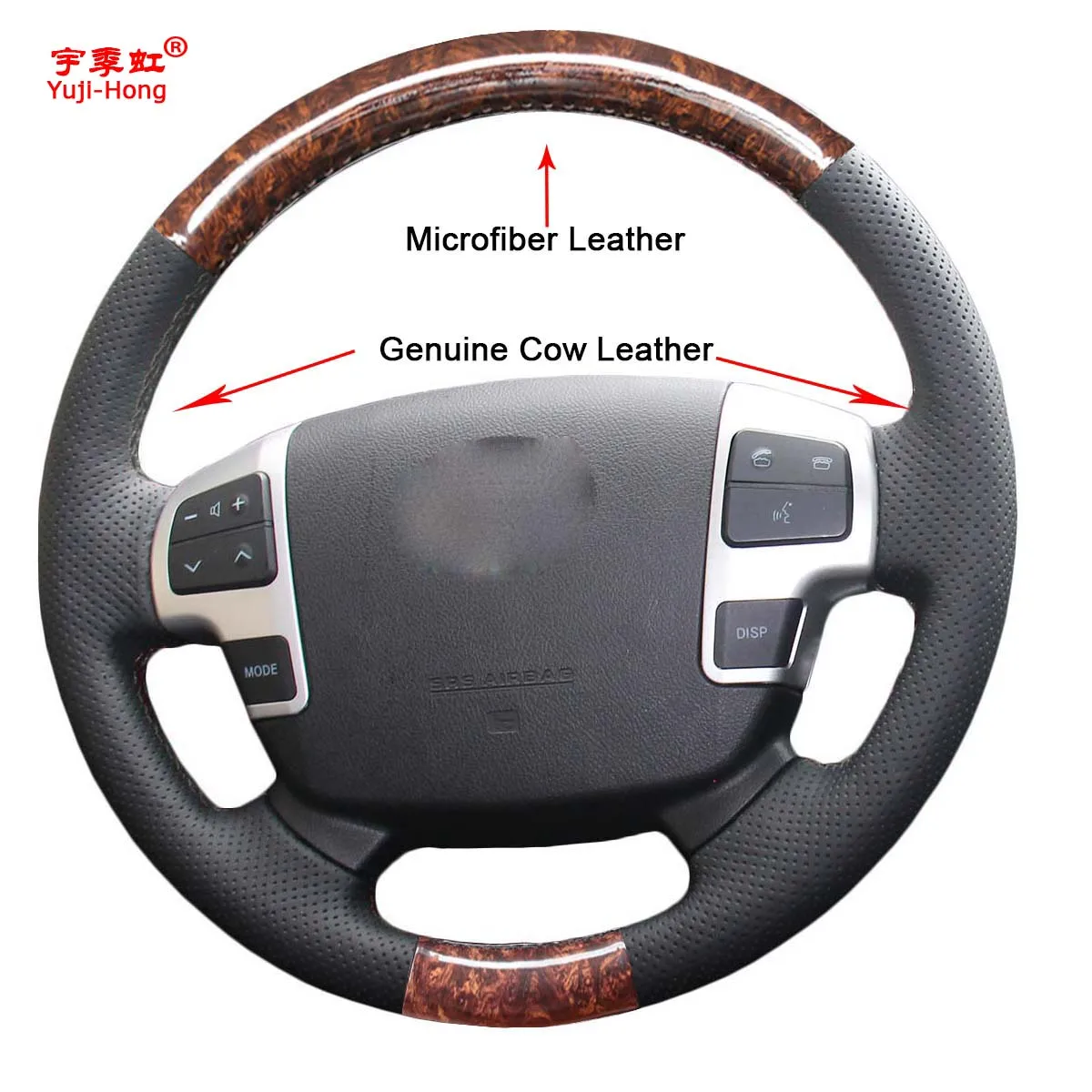 Чехол Yuji-Hong из натуральной кожи на руль автомобиля, чехол для Toyota Land Cruiser LC200 2007-2012, прошитый вручную верхний слой из коровьей кожи