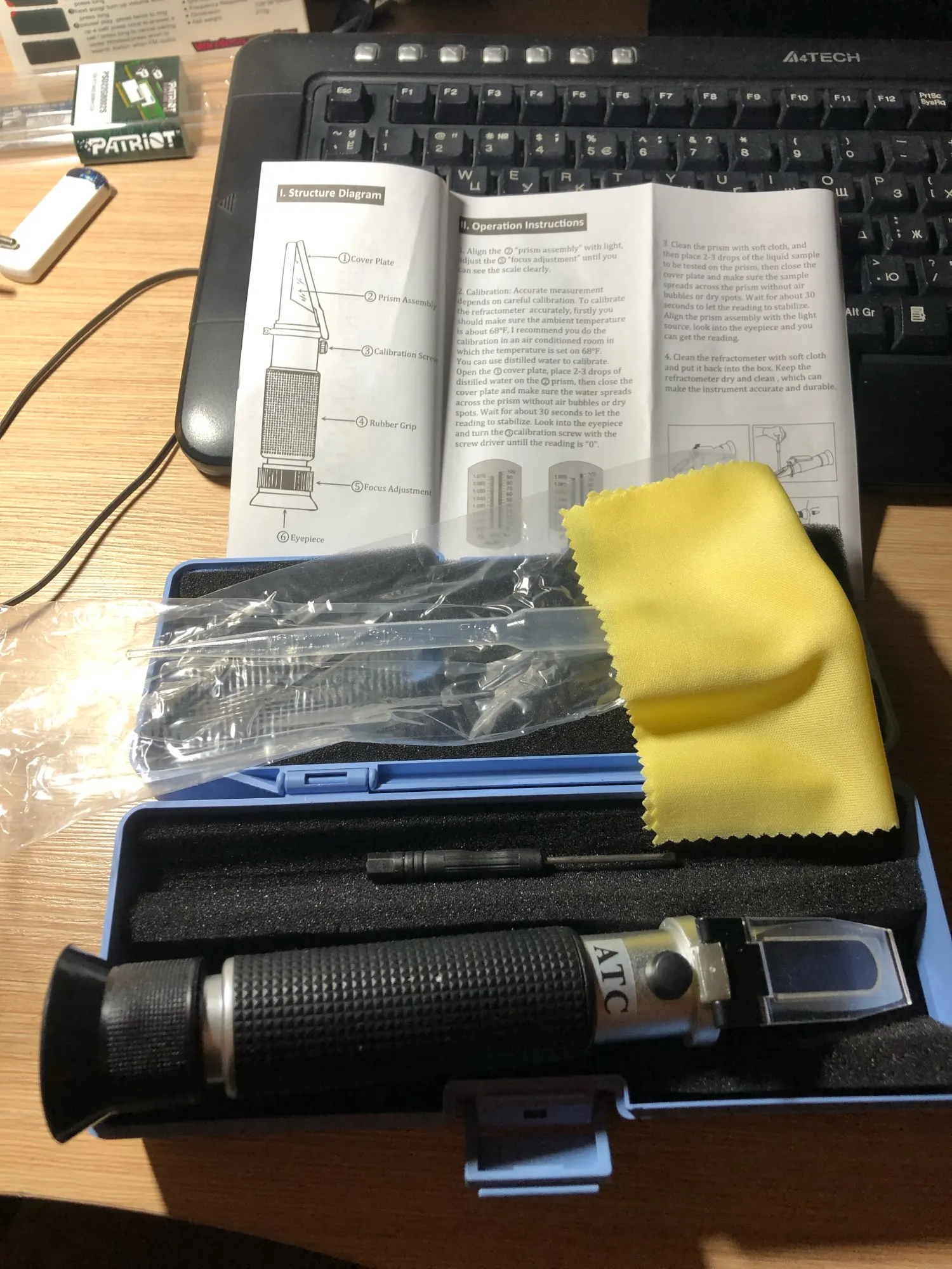 доставка в Москву неделя -курьер привёз домой на улице жара +32 при проверке чистого эт/спирта 96% Рефрактометр показал 61%. Я подумал прибор брак а потом охладил спирт в холодильнике и граница синего и белого упёрлась в потолок выше 80%. Получается компенсация заявленная от 10гр. до 30гр.не работает и нужно поддерживать t спирта 20 гр.для точного измерения или я не разобрался