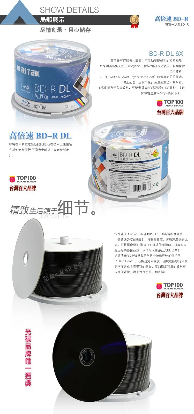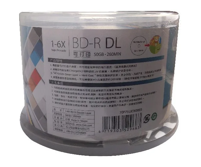 10 шт.упак. BD-R 50G- RITEK BD-R 1-6X 50GB диск BDR для печати Blue-ray BD-R пустой диск 100% оригинальный Ritek (Тайвань)