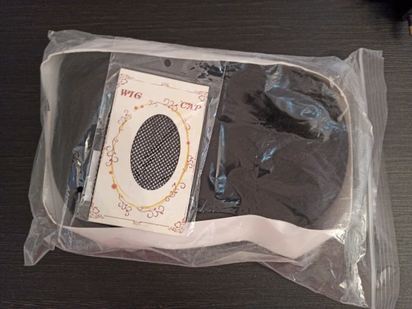 Парик пришёл чуть меньше, чем за две недели, то есть очень быстро. Он довольно густой, чёлка длинная, так что всё можно подогнать под себя. Внутри есть крючки. Шапочка, как видно, в комплекте. Волосы сыпятся не очень сильно. В первый раз возникли некоторые трудности с надеванием, но в целом сидит он вроде бы хорошо.