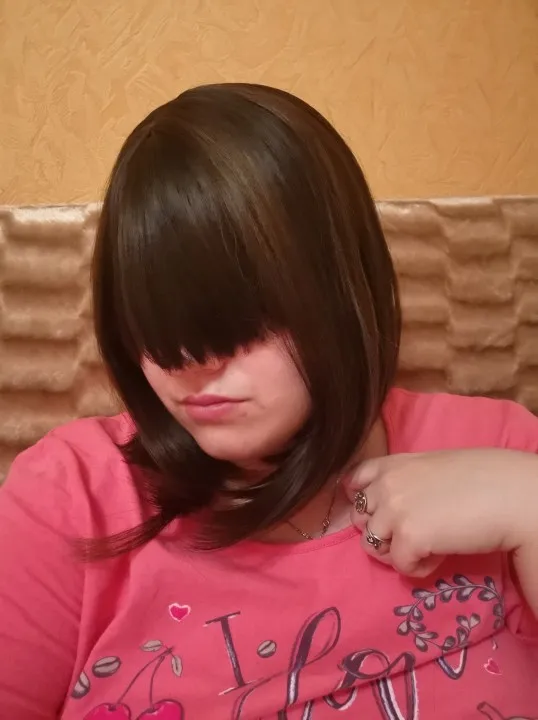 Очень классный парик, легко расчесывается. Челку подстригла, так как не привыкла к длинной. Единственное, что не привычно, нет заколочек внутри, что бы к волосам крепить. Но я невидимками закрепила. Смотрится отлично!