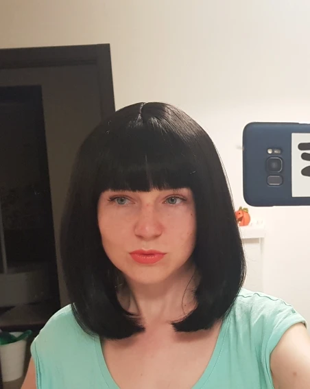 Товар прибыл раньше графика. Парик очень хороший, чтобы быть дешевым, очень толстый и реалистичный, только то, что бахрома не такая короткая, как на картинке, но, скорее, представляет собой комок очень длинный и должен быть acconciato, чтобы получить бахрому. Он используется для косплея Миа воллейс и очень доволен полученным итхом.