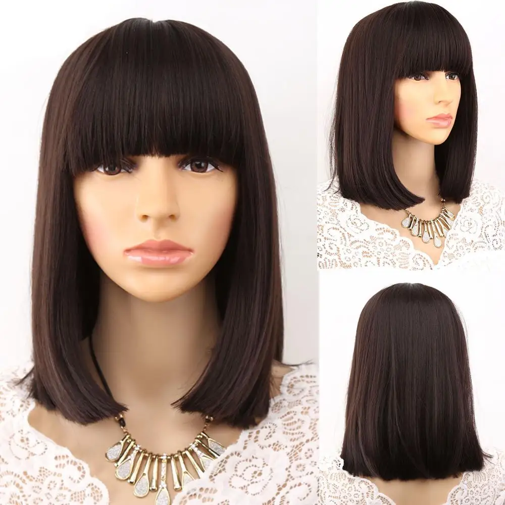 Amir прямые черные синтетические парики с челкой для женщин волосы средней длины боб парик термостойкая прическа bobo вьющиеся парики