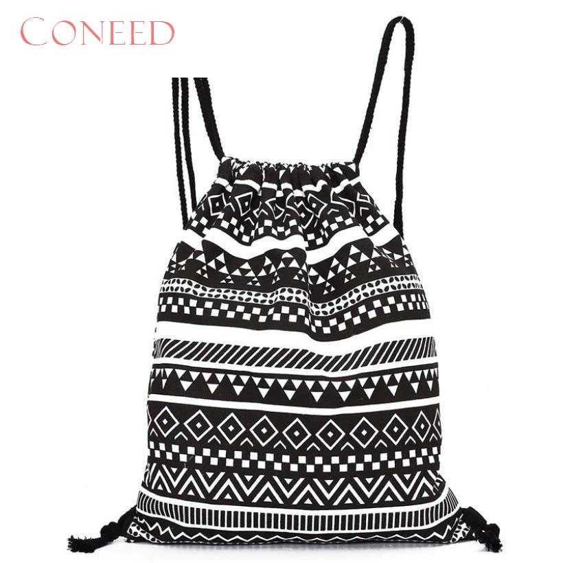 CONEED школьные сумки, модные сумки с ручками, Очаровательная симпатичная унисекс Ретро Геометрическая Сумка на шнурке с рисунком Oct16