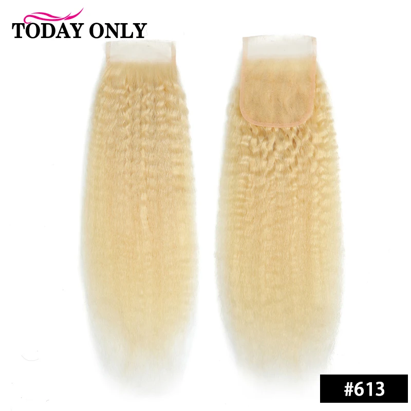 Бразильские курчавые прямые волосы, кружевная застежка с детскими волосами, 100% натуральные волосы, кружевная застежка, 613 натуральные черные волосы Реми