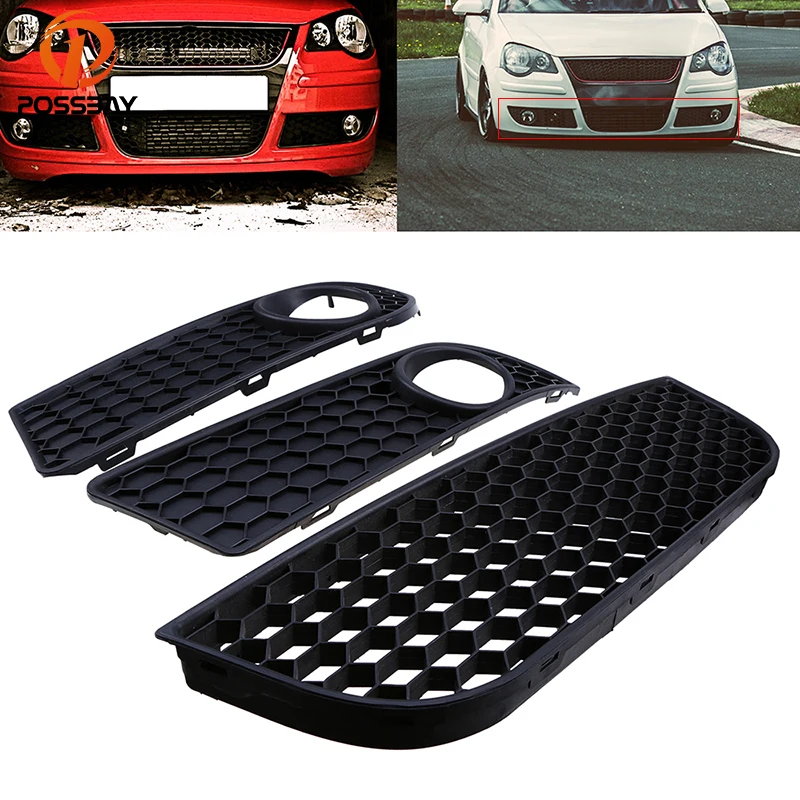 Автомобильная решетка для противотумансветильник фар POSSBAY, решетка нижнего бампера для VW Polo MK4, 9N3, 2005-2009, решетки противотуманных фар, чехол