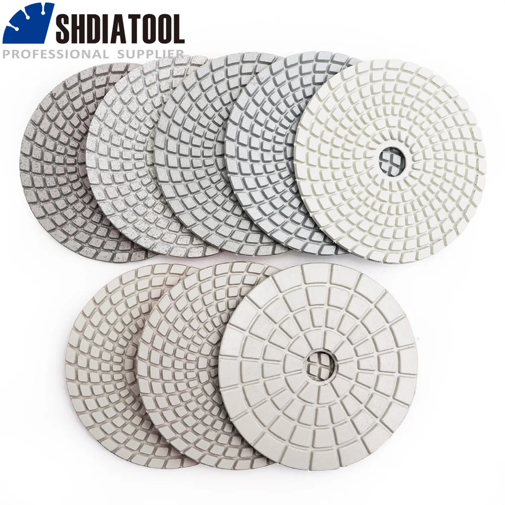 SHDIATOOL 8 шт.компл. 4 "алмазные влажные Гибкие Полировальные колодки белый скреп для гранита и мрамора шлифовальный диск фрезерный шлифовальный диск