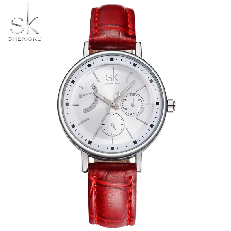 Часы наручные SK женские с кожаным ремешком, брендовые Модные кварцевые аналоговые, 2017