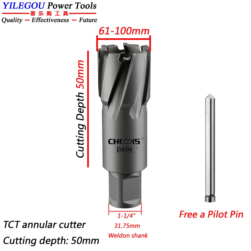 Диаметр 61-100 мм x 50 мм TCT кольцевой резак с 1-14 "наконечником Уэлдон, 100*50 мм карбида сплава биты пустотелого сверла, 2" TCT кольцевая пила