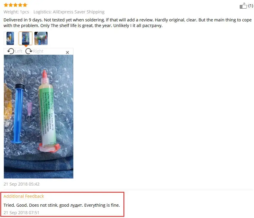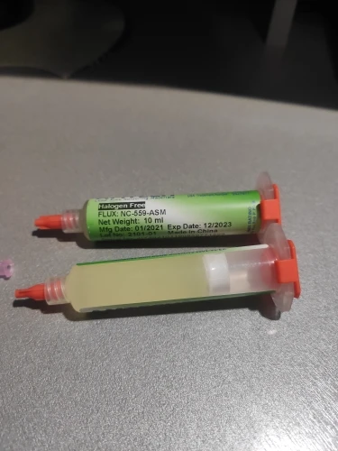 качественный флюс. у этого продавца покупаю второй раз. оба раза присылает качественный товар. цвет флюса светлый, не дымит, нет едкого запаха. главное чтобы был светлый цвет. у другого продавца заказывал подобный флюс - пришел темный цвет, у него был едкий запах, при нагреве подгорал. у данного флюса срок годности до декабря 2023 года
