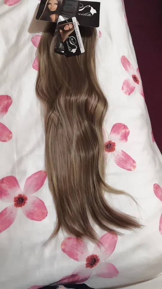 Прибыл раньше, чем ожидалось! Товар выглядит так же, как описано, я бы хотел, чтобы в нем было больше кусков/еще пара штук, но этот вопрос может быть решен путем обрезания некоторых ваших натуральных волос под удлинителями.