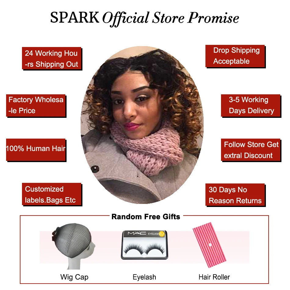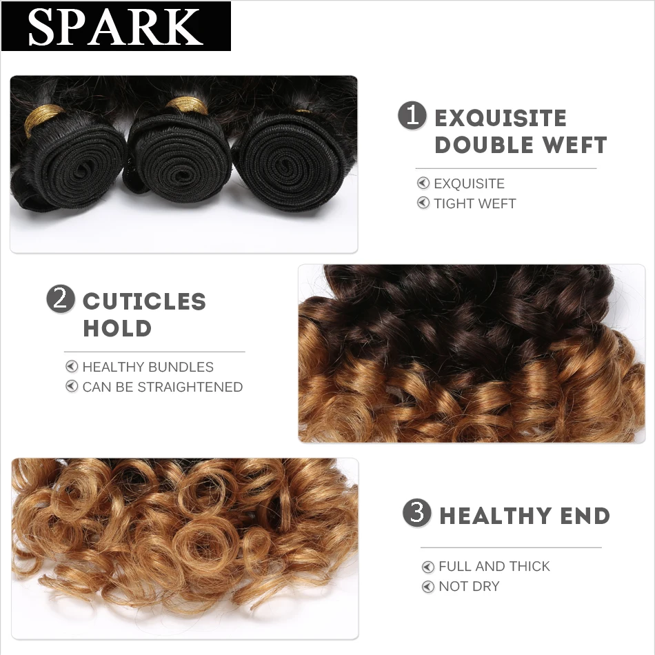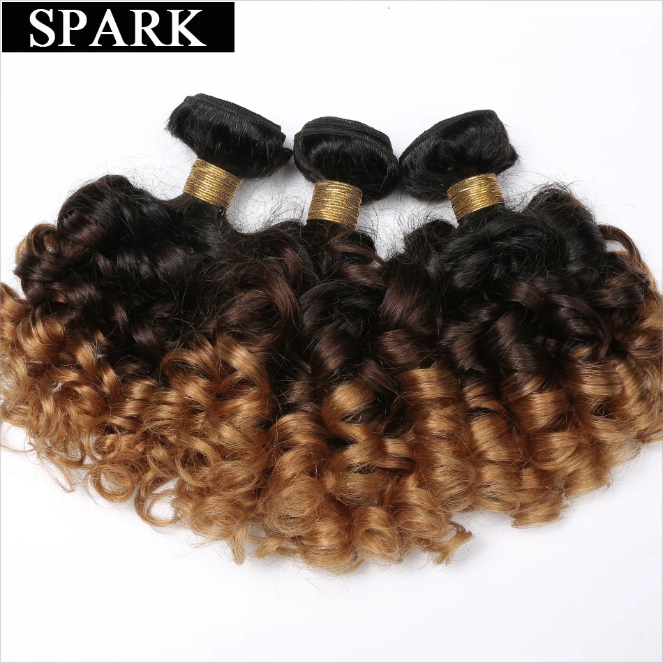 Пучки человеческих волос Spark для наращивания, бразильские Надувные кудрявые волосы с эффектом омбре, 3 тона, волнистые пучки волос черного цвета для женщин L