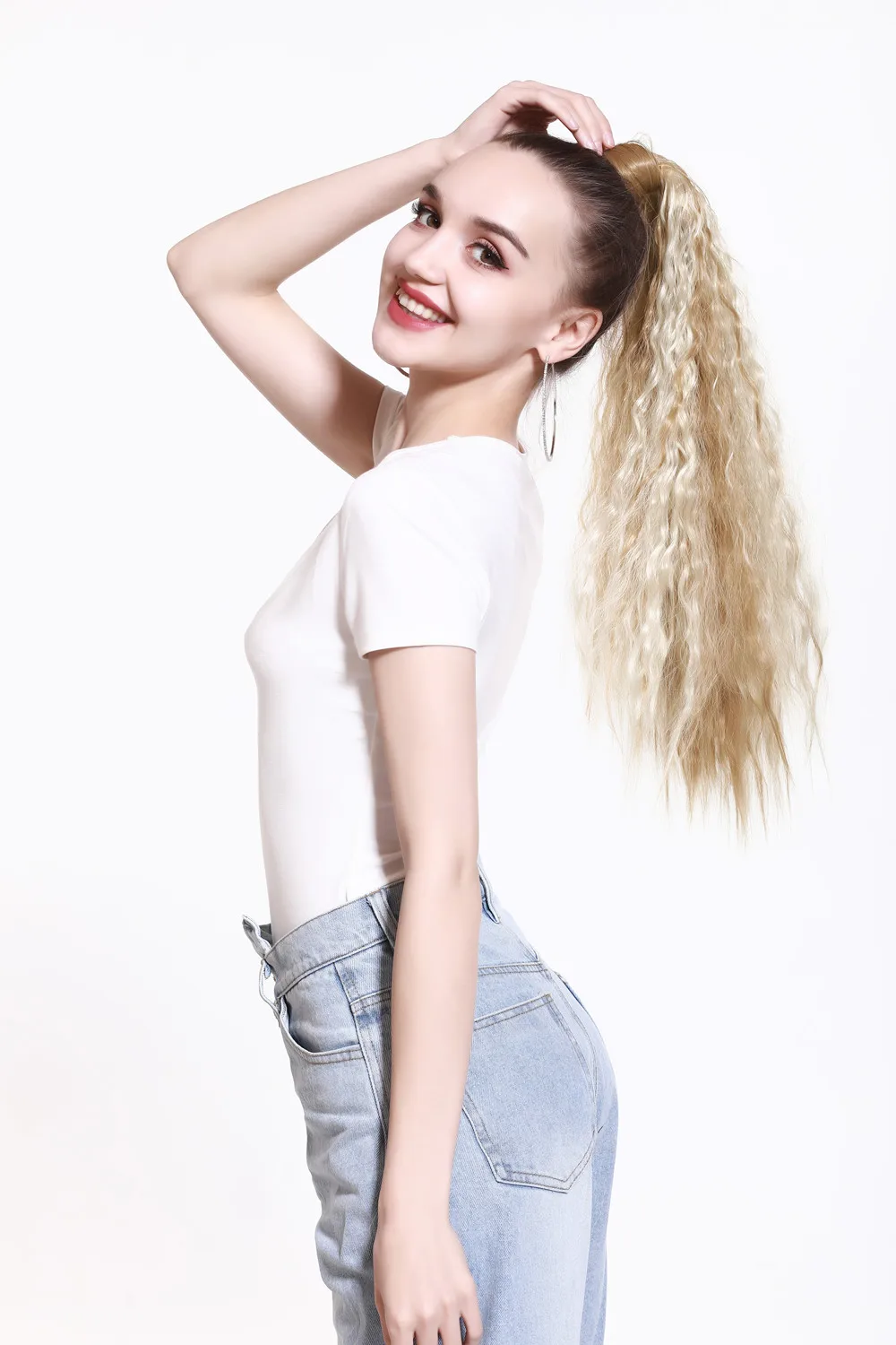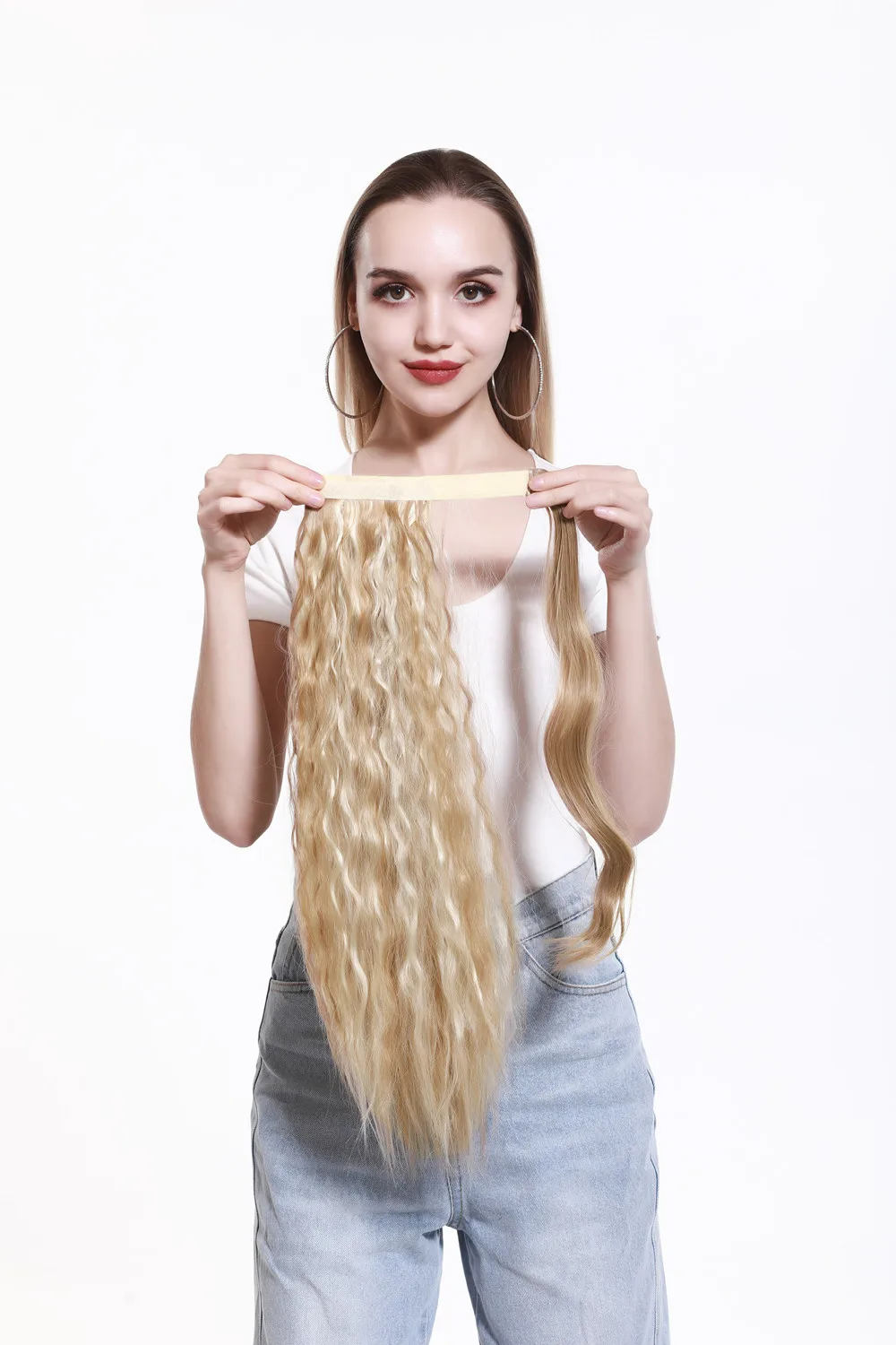 Парик для наращивания волос с зажимом, прямой, кудрявый, длинный, синтетический, накладной хвост, блонд, накладной афро шиньон