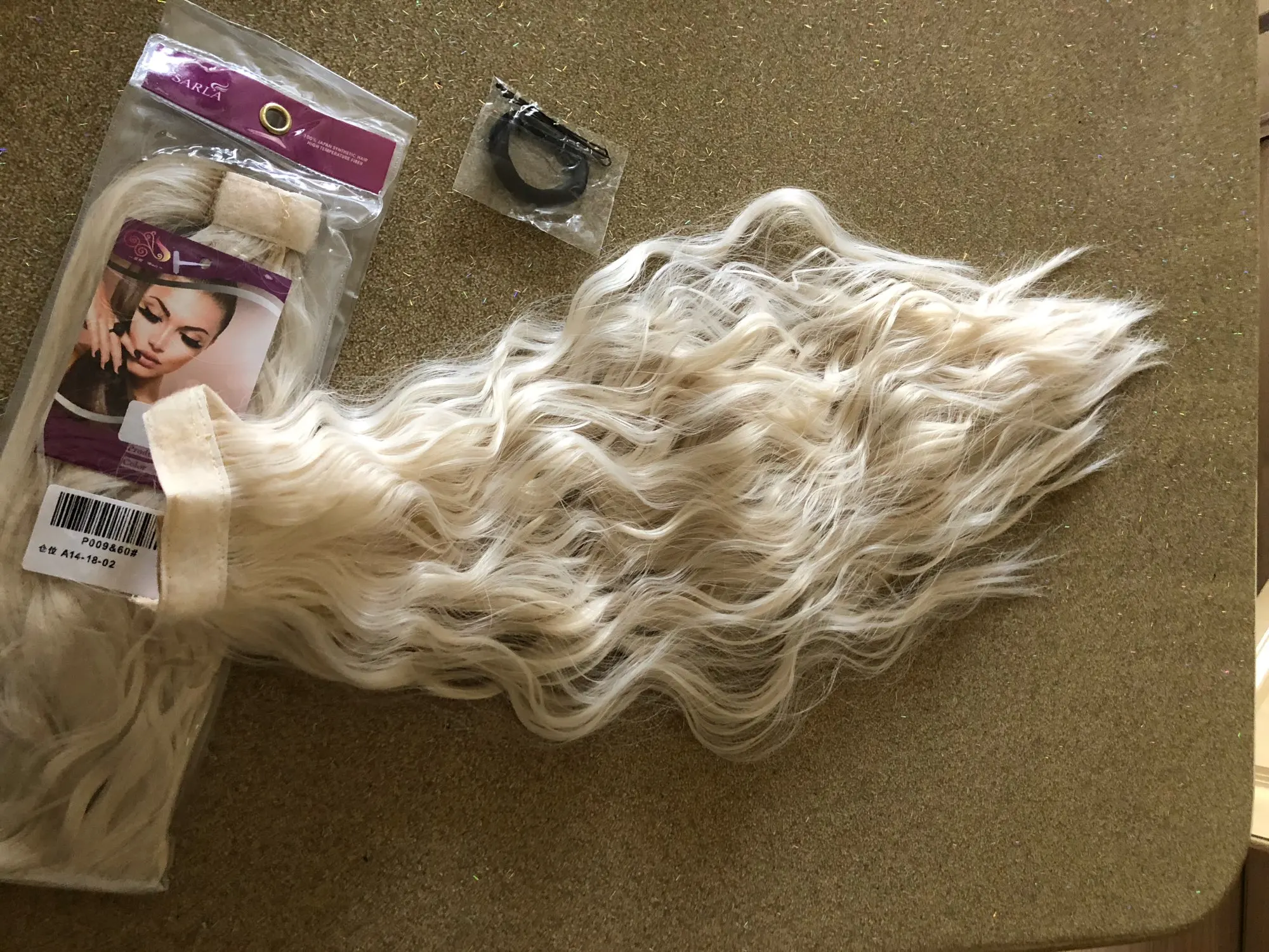 Довольно хорошо, точно, длинный цвет и не ощущается так синтетический. Возьмите с собой резинки для волос и две подарочные вилки. Его легко положить, осторожно, что вы можете легко запутывать. Он прибыл в Мадрид на неделю.