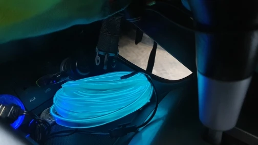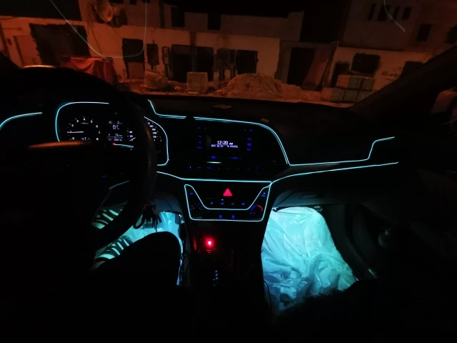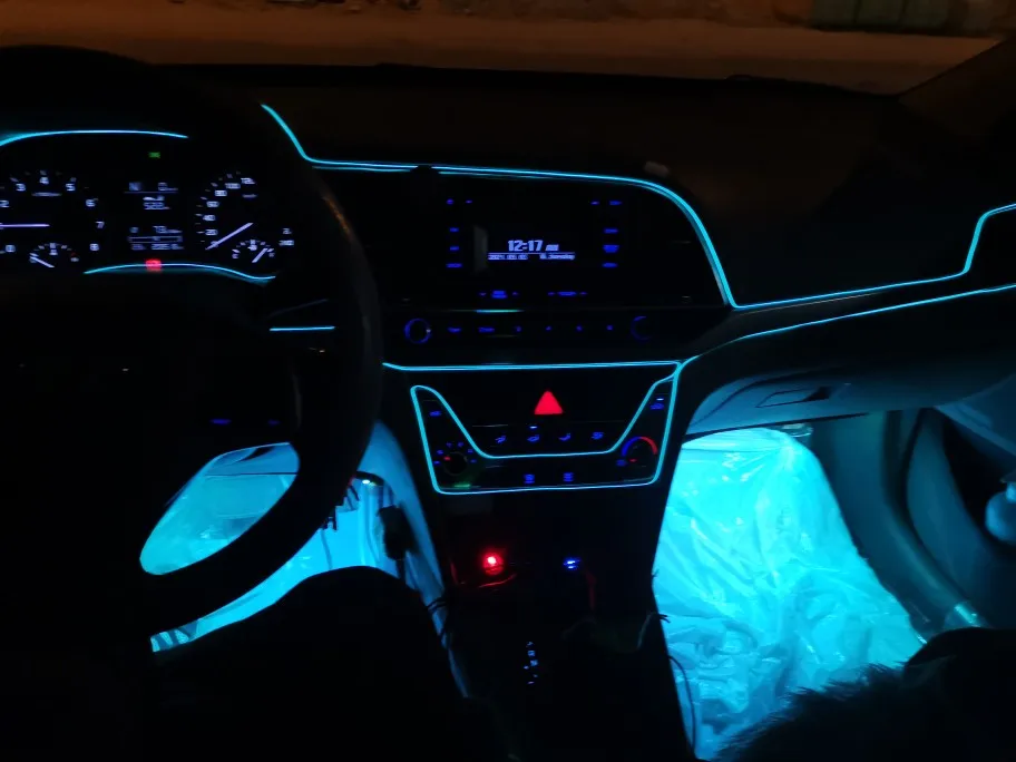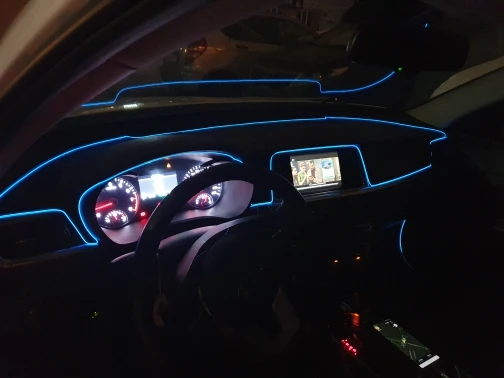 выглядит в машине приятно не раздражающе глаза,еле видная днём подсветка ,вечером ночью эффект нормальный не режет и не бросается в глаза как светодиодка.Думал вставка плотная будет и будет трудно вставлять в пазы ,оказалось очень тонкая удобная в креплении в целом замечательно .