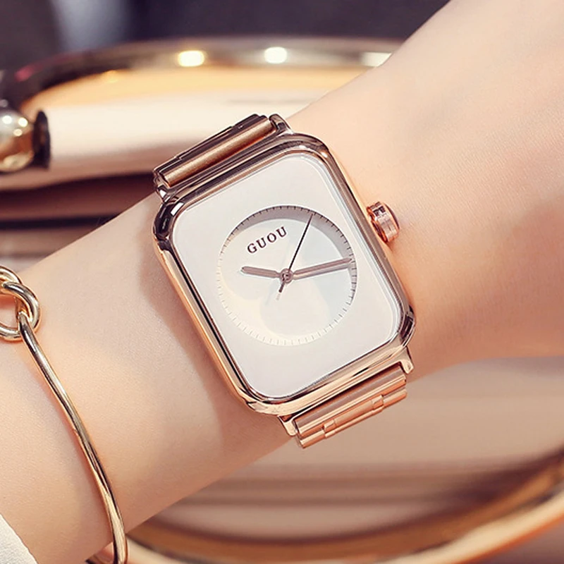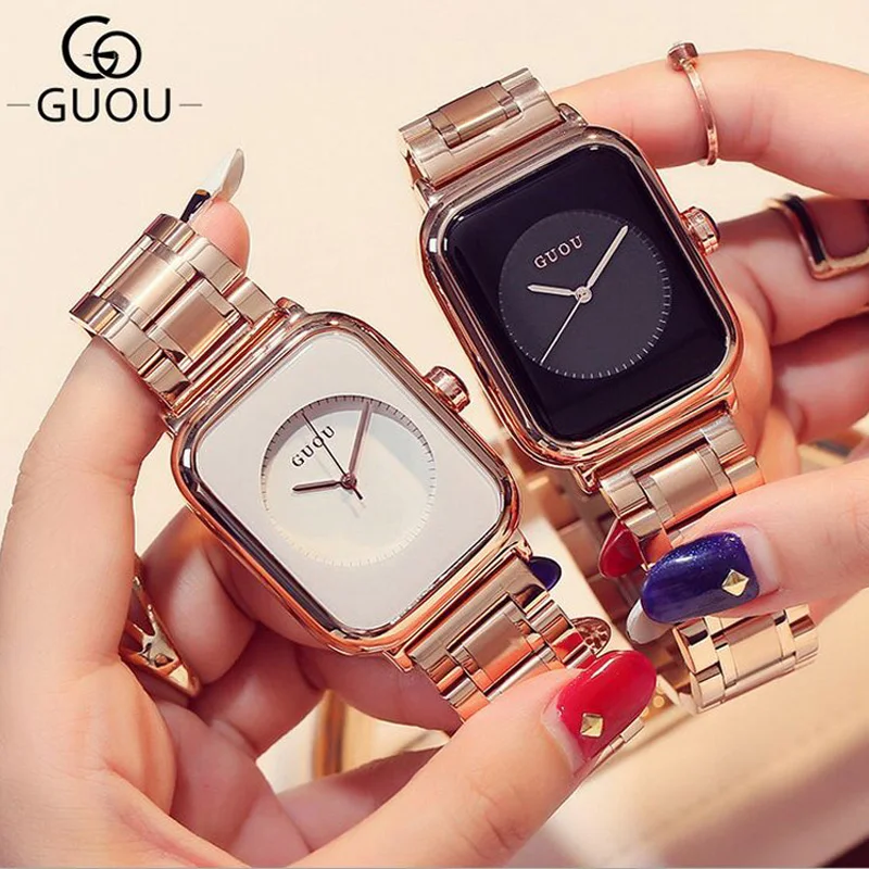 Женские Часы GUOU 2019, роскошные часы, модные женские часы из розового золота, женские часы, женские часы